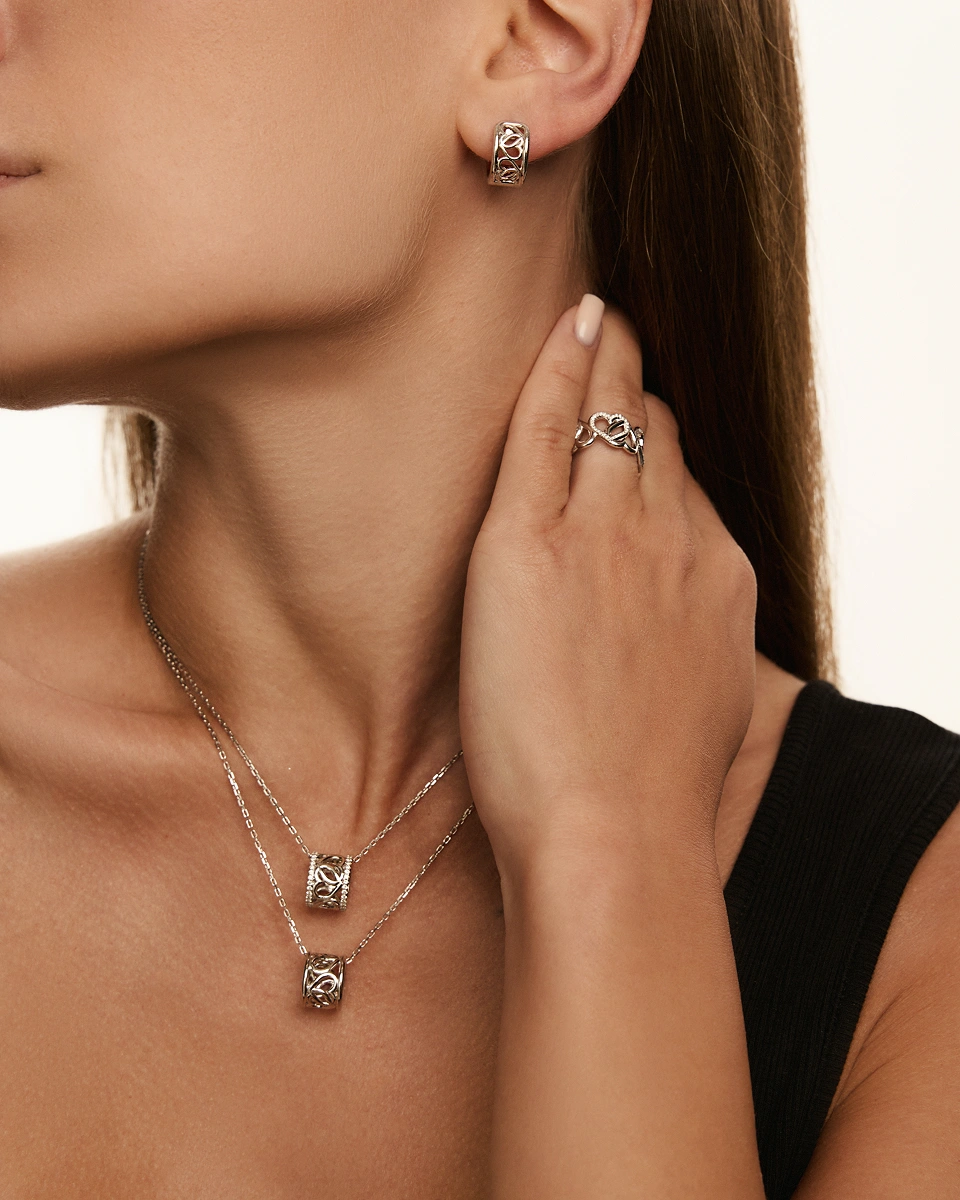 The Elegance Necklace in White Gold offers a clean and refined design, crafted in luminous white gold. Its understated silhouette makes it a versatile piece — perfect for layering or wearing solo for a touch of modern sophistication.