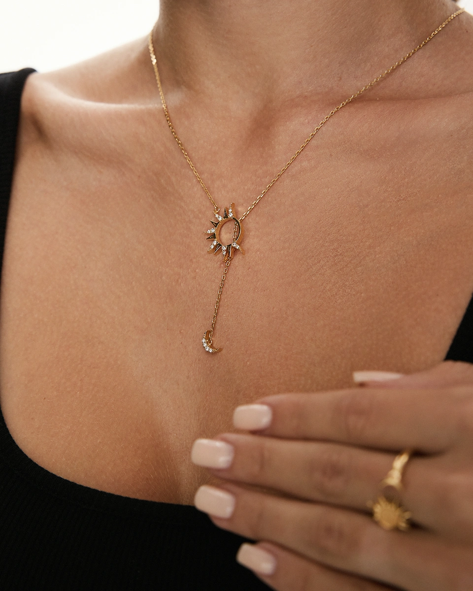 Muar Sun and Moon Necklace in Yellow Gold with Diamonds