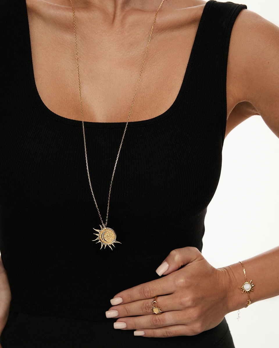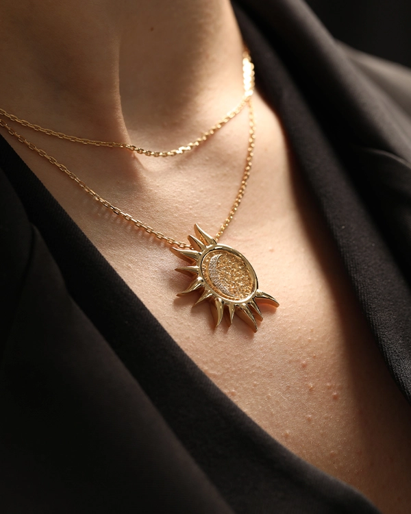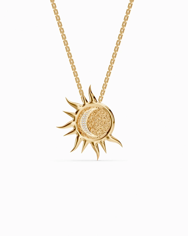 Muar Pendant Necklace in Yellow Gold with Diamond Moon