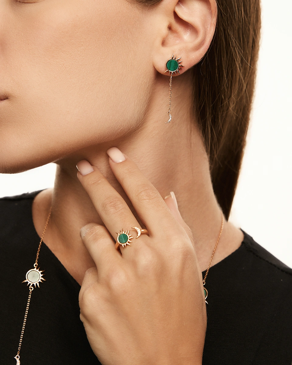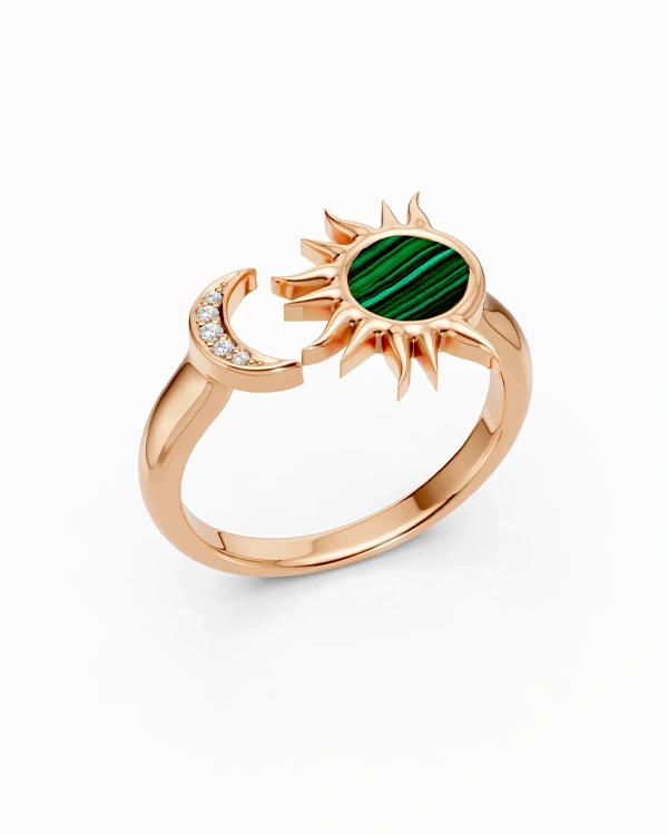 Muar Ring in Rose Gold with Malachite and Diamonds
