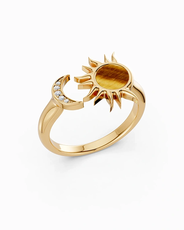 Muar Ring in Yellow Gold with Tiger’s Eye and Diamonds