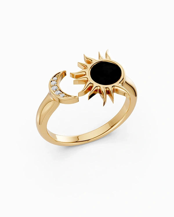 Muar Ring in Yellow Gold with Onyx and Diamonds